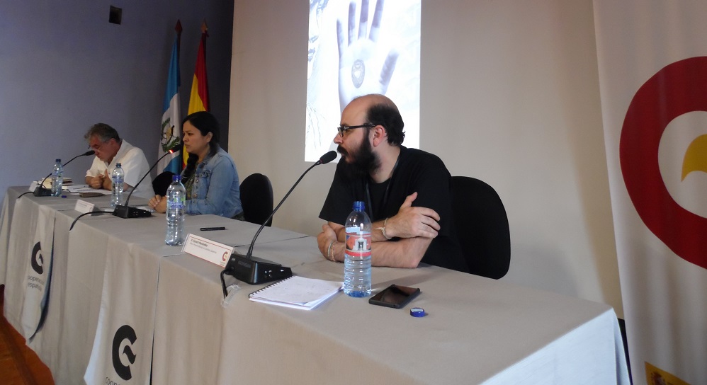 Visitá www.proyectoloszopilotes.com Eynard Menéndez (der.) de Proyecto Editorial Los Zopilotes habla durante su ponencia. (Foto Guatemalan Art: Sandra Escobar).